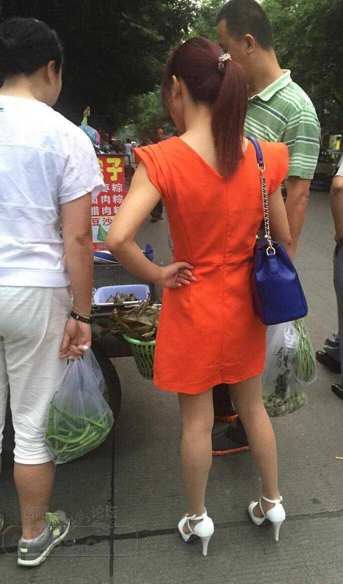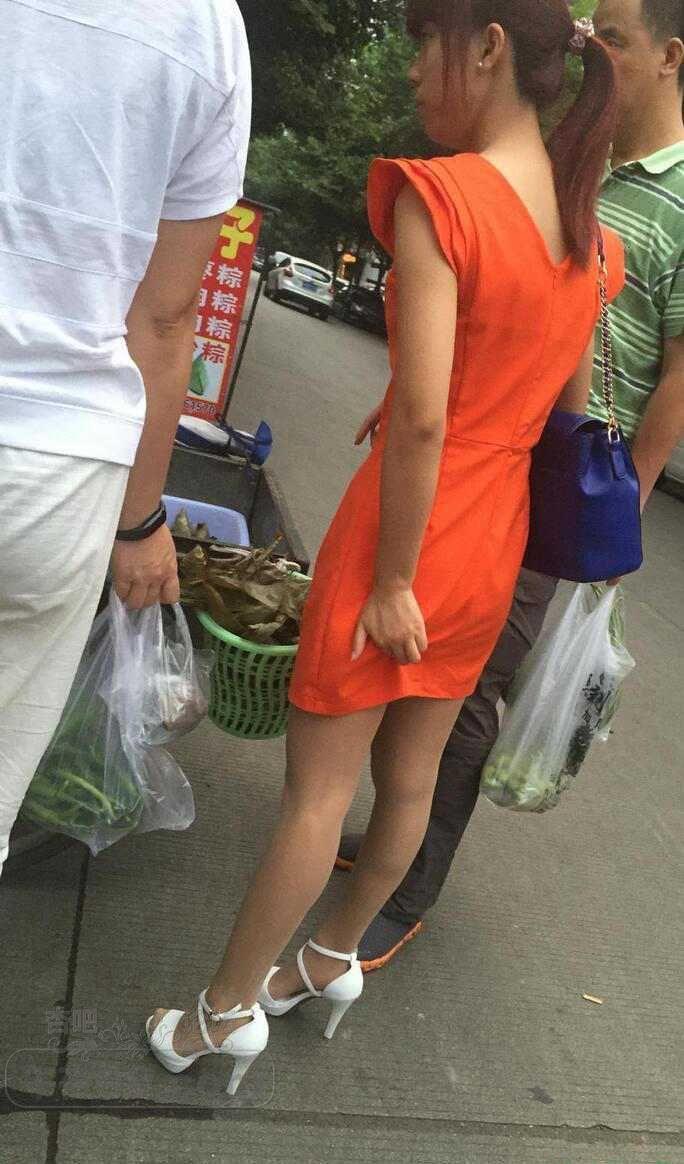 橘黄色连衣裙的高跟鞋少妇边走边挠屁股【15P】